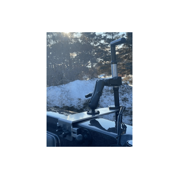 - 15″Â Â brackets are built with 3/8″ 5052 Aluminum and include a 1.5″ Ram base (RAM-202U) required for stowing. The secondary ball location is intended for the PG-5000 kit when the the pole is in use