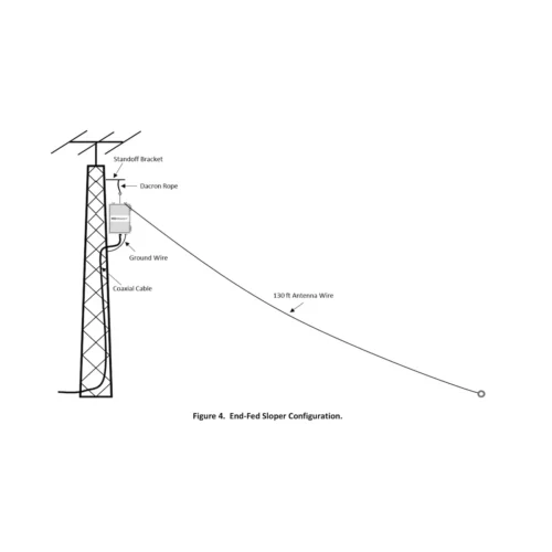 The main radiating component of the “L” is the vertical wire, that’s what makes it a very good ground-wave and DX antenna. So it would be good if this can be kept in the clear, or several feet away from your tower, and of course, as high as you can make it. The horizontal part may slope downward, or bent several times to accommodate any obstacles. Keep in mind, the more you bend the element back on itself, the more of the radiated signal is canceled out.