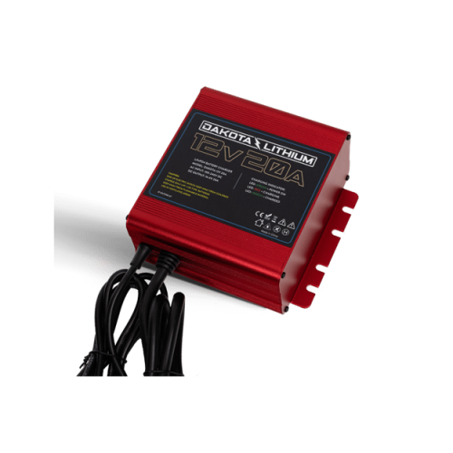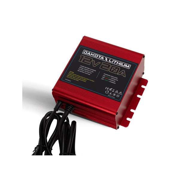 20 amp LiFePO4 charger for fast charging of larger batteries. Optimal for Dakota Lithium 54Ah, 100Ah, and 170Ah batteries. All 12 volt Dakota Lithium batteries should be charged using a LiFePO4 compatible charger.