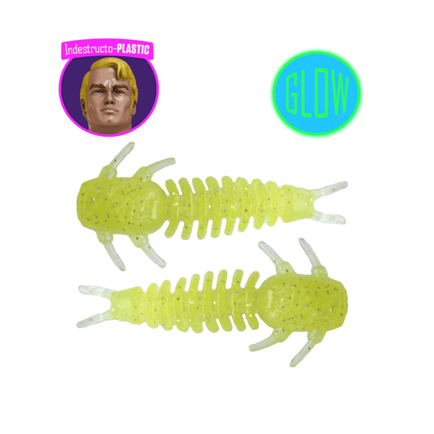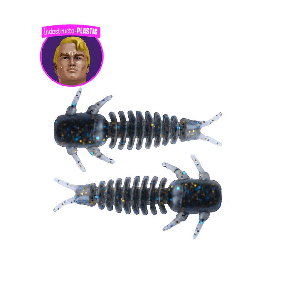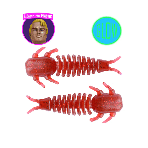 The baby brother of the IndestructoBUG. Its a 1″ creature made from your favorite IndestructoPLASTIC. Its elasticity will keep it seated on the hook where it needs to be. The ribs and arms wiggle so enticingly you may not be able to help yourself….. *not for human consumption*