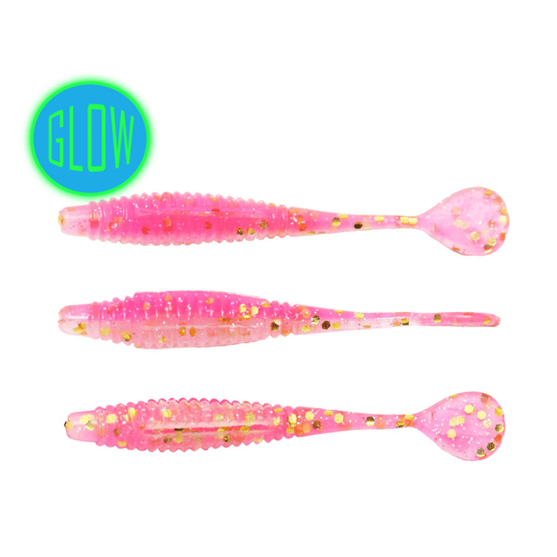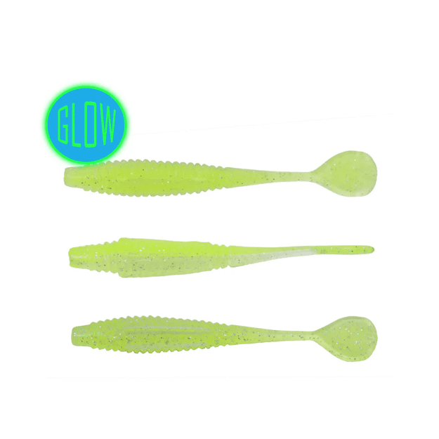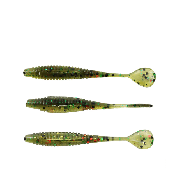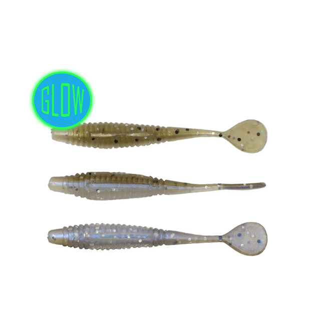 The Mini Slayer is a cheat code for large panfish, but is also an excellent finesse option for Walleye, Trout, and Bass. The ribbed body gives the bait a lifelike flexibility, while offering a larger lateral line presence in the water. It is built uniformly round so that it can be rigged in several ways to give the tail different presentations. The unique flat paddle provides an unpredictable, wild flapping action when jigged aggressively, and conversely, a vulnerable shimmy even when attempting to hold this bait motionless.