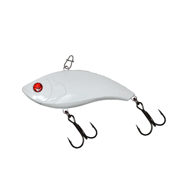 5.5″ – 140mm This rattlebait has a loud menacing vibration when ripped hard, a wandering vulnerable body-roll when jigged slowly, and a bold bronco tail-kick when pounded on the spot. We haven’t really found a wrong way to work this lure yet. Frostbite has unique color patterns for covering all fishing conditions and serve this bait with a compact snip snap and premium black nickel treble hooks to tame any temper.