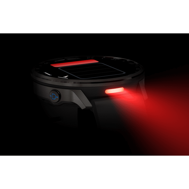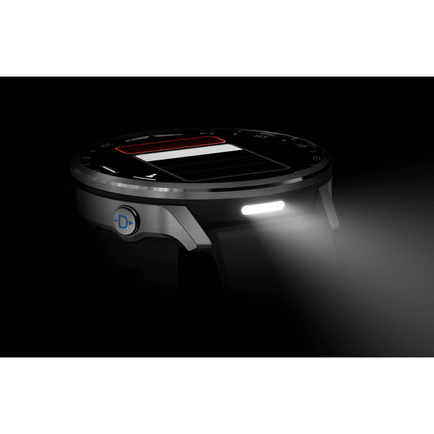 - True integrated flashlight illuminates with bright white and red LEDs; use the watch’s red shift mode to help preserve your night vision