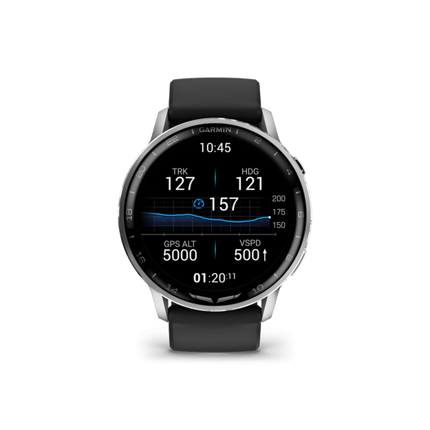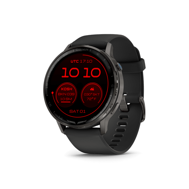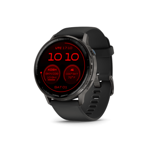 Designed for life in and out of the cockpit, the D2™ Air X15 aviator smartwatch combines exclusive piloting tools — for weather, navigation and flight logging — plus advanced training, fitness and wellness features. With its bright 1.4″ AMOLED display and built-in LED flashlight, the watch comes equipped for flight with an aeronautical database, HSI and Direct-to navigation capability. Use the Garmin Pilot™ app to transfer flight plans and receive avionics data and alerts on your wrist.