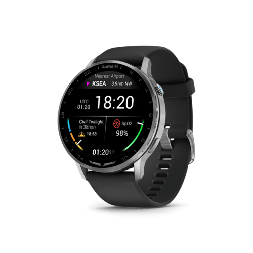 The built-in speaker and microphone let you make and take calls from your wrist when your watch is paired with your smartphone. Stay flight-ready with strength training plans, daily suggested workouts and monitoring of heart rate, respiration, stress, sleep and more (data presented is intended to be a close estimation of metrics tracked).