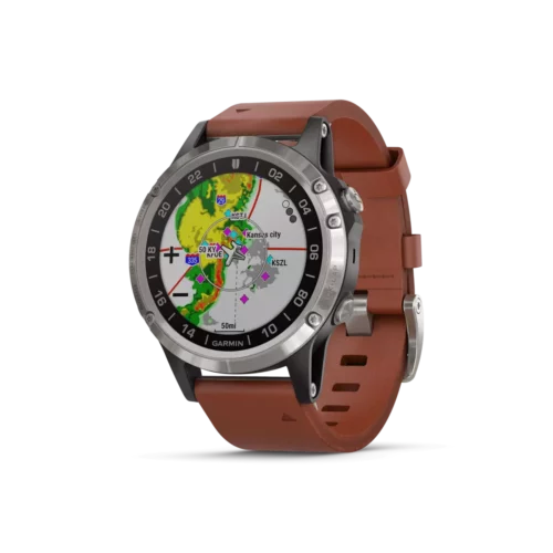 Featuring a midsize (47 mm) form factor with a silver titanium bezel and scratch-resistant domed sapphire crystal lens, the D2 Delta model is built for extra-rugged durability in demanding environments. With a rich array of color mapping, weather, waypoint reference and flight logging features, you can count on reliable on-wrist situational reference and backup navigation in your cockpit. Then, between flights, you can use the latest sport watch features — including Elevate™ wrist-based heart rate monitoring¹, daily activity tracking², training metrics and more — to keep up with your personal fitness goals. For these intense activities, each D2 Delta version comes with a soft, flexible black silicone sports band, offering easy QuickFit® band replacement without tools. And wherever you travel, smart notifications¹ (emails, text messages, alerts and more) can display on the watch to help you stay in the know while on the go.