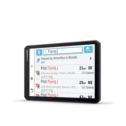 Locate preferred truck stops with the preloaded directory of Truck & Trailer Services. It lets you filter listings by brand or amenity, such as “Flying J” or “Showers.”