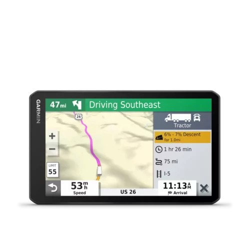 With its bright, crisp 7” touchscreen display, this dēzl truck navigator is designed for easy in-cab viewing and intuitive operation.