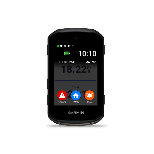 The Edge 850 cycling computer features a vivid color display with touchscreen and buttons in a sleek, compact design and delivers up to 36 hours in battery saver mode. Get smart fueling alerts that account for fitness, course demands, heat and humidity when used with your compatible power meter and heart rate monitor. Ride like a local with preloaded maps for road, gravel and trails. Get alerts for road hazards reported by fellow cyclists when used with your compatible smartphone and the Garmin Connect™ app. Train like a pro with a variety of plans that integrate seamlessly with your device. Garmin Cycling Coach plans even adapt to your performance, recovery and more when riding with your compatible power meter and heart rate monitor. With the Edge 850 get clear workout and navigation prompts, thanks to a built-in speaker. A bike bell lets you alert riders and pedestrians, and Garmin Pay™ contactless payments (with a supported bank and payment network on Edge 850) make fueling stops a breeze1.