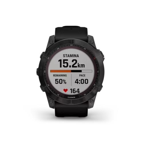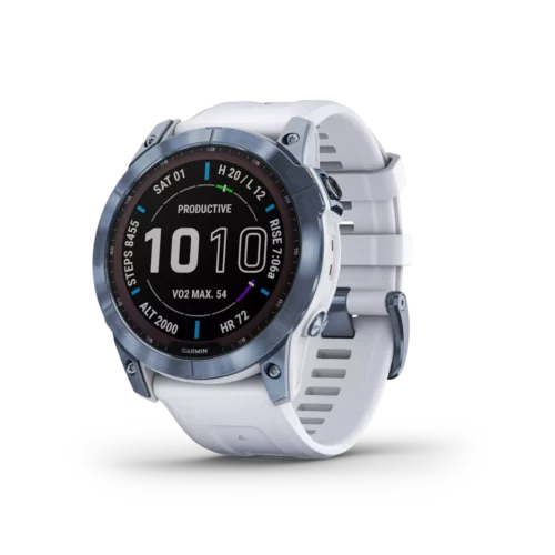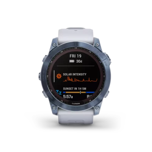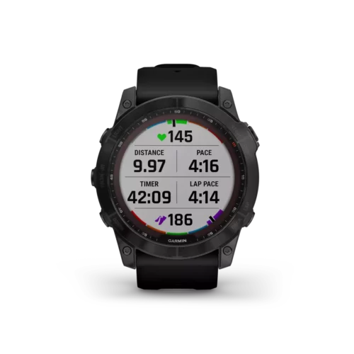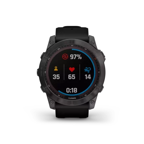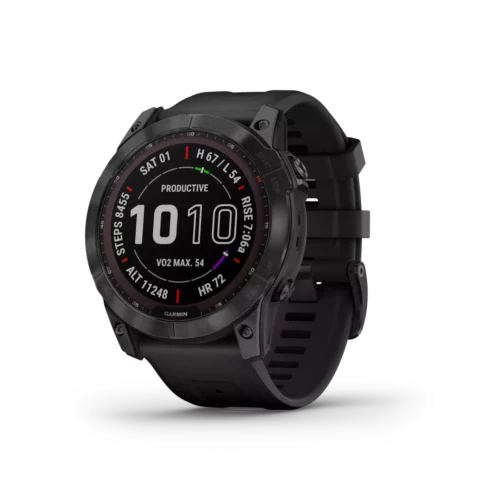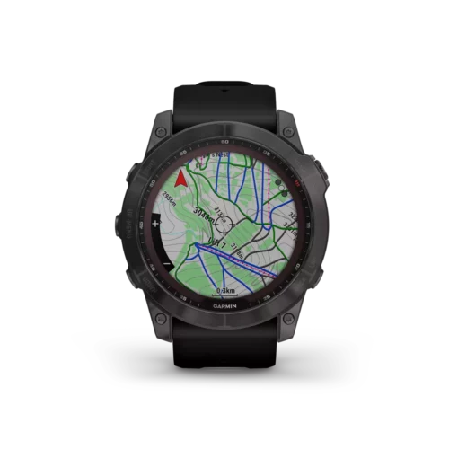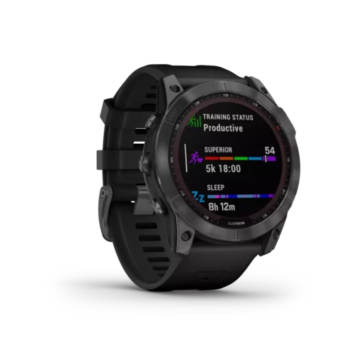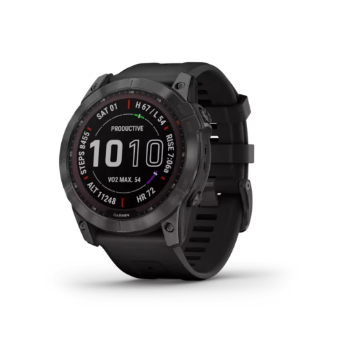 There are 7 days in a week. And the fenix 7X series multisport GPS watches are built for all of them. Meet any athletic or outdoor challenge with cutting-edge training features, sports apps, 24/7 health and wellness monitoring and more. Use trusted button controls or a new touchscreen interface to access selections. Gain performance insights and metrics that help you manage your exertion and build stamina. Optimize recovery and overall wellness by monitoring heart rate¹ , respiration, stress, sleep and more. GPS and outdoor navigation sensors guide your outings off the beaten path. And to complement your tamer days, connected features include smart notifications³, music storage and Garmin Pay™ contactless payments4. Available Solar versions offer a solar charging lens that uses the sun’s energy to extend battery life. Plus, the fenix 7X offers a built-in LED flashlight that keeps you going after dark.
