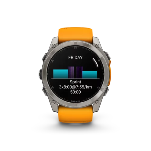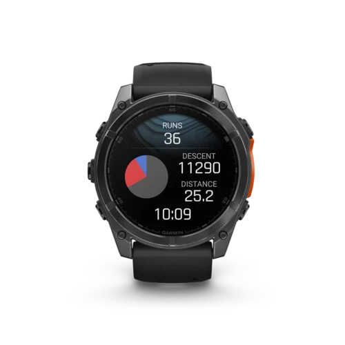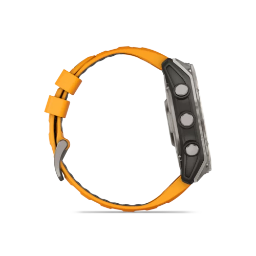 fenix 8 is built to endure with options that include a scratch-resistant sapphire lens, titanium bezel and rear cover. The new sensor guard protects essential sensors and leakproof buttons provide a 100-meter water rating and 40-meter dive rating. The watch is tested to U.S. military standards for thermal, shock and water resistance.