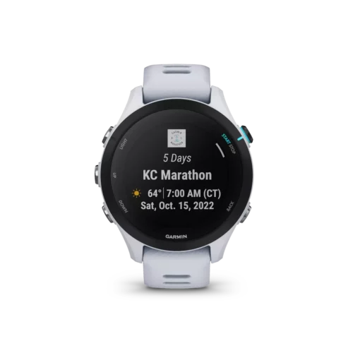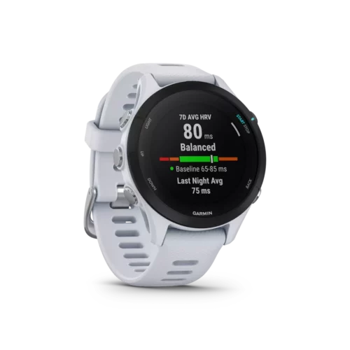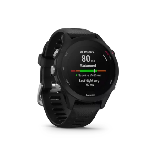 Run at a higher level with the Forerunner® 255 series. This running smartwatch helps you train and recover smarter with training status, running power, multi-band GPS and daily suggested workouts that adapt to your performance and goals. Plus, other new features such as race widget, which helps you plan your race-day strategy, and morning report with HRV status that reveals your overall health alongside the day ahead. And with Garmin Pay™ contactless payments¹, it’s never been easier to buy that postworkout coffee — no matter how you work out — with over 30 activity profiles including triathlons, cycling, swimming and more. With Forerunner 255, you can get a continuous picture of your health, from training and recovery to sleep quality and overall wellness with up to 14 days of battery life in smartwatch mode and up to 30 hours in GPS mode.
