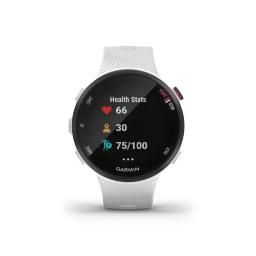 When you lace up your shoes and get ready to run, make sure you have the right tool for the job. Forerunner 45 is the GPS running watch with all the running-related features you need in a sleek, lightweight smartwatch that you’ll want to wear all day and night.