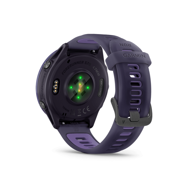 For dedicated runners chasing goals, there’s Forerunner 570 — the GPS running smartwatch with Garmin’s brightest AMOLED display, aluminum bezel and advanced training features. Available in two case sizes, — 42mm and 47mm — and 6 colors so you can choose the perfect option. Get ready for your race with personalized plans from Garmin Coach for running and now triathlons — select plans even adapt based on your performance and recovery. Use the training readiness feature to know when you’re primed for a productive workout, and use training status to know if you’re training productively. With multi-band GPS, you’ll get superior positioning accuracy in challenging environments. Forerunner 570 has a built-in speaker and microphone so you can make or take calls from your wrist (when paired to your smartphone). Before heading to bed, check your evening report, which helps you prepare for the next day with reminders of sleep needs, tomorrow’s workout, weather and more. You’ll always be ready to hit the ground running with up to 11 days (47 mm size) of battery life in smartwatch mode and up to 18 hours in GPS mode.