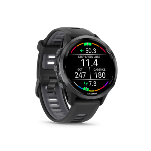 For performance-driven runners, there’s Forerunner® 970 — the premium GPS running and triathlon smartwatch with Garmin’s brightest AMOLED display, durable sapphire lens and lightweight titanium bezel. Use the built-in LED flashlight for greater awareness when you head out before the sun’s up or stay out past dark. Understand your overall energy efficiency with running economy, and see how much you are slowing down when your foot hits the ground with step speed loss (HRM 600 monitor required; sold separately). Running tolerance helps you understand the real impact running has on your body so you can adjust your training to avoid overload and improve. Use multi-band GPS and full-color, built-in maps plus navigation enhancements to stay on track while you train. Forerunner 970 is ready to go as long as you are, with up to 15 days of battery life in smartwatch mode. If you ever go too far, use the built-in speaker and microphone to make a call from your wrist (when paired with your smartphone).