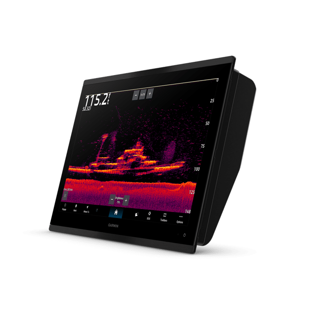 - Built-in 1 kW xCHIRP and Garmin RapidReturn™ sonar. Excellent target separation helps you see crisp and clear fish targets all around.