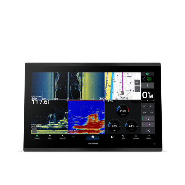 GPSMAP 9217xsv is the integrated touchscreen chartplotter designed for captains who demand the best. Enjoy edge-to-edge clarity with up to 4K resolution on a glass helm with premium design and materials. Plot your paradise faster than ever with processing power that’s up to 7 times faster than previous generations, and get 5GHz Wi-Fi® connectivity for ActiveCaptain® app updates.