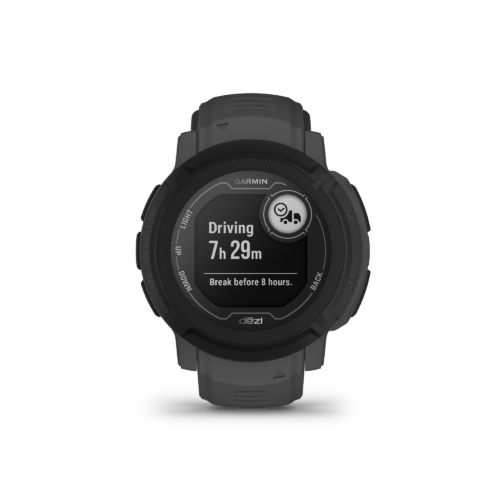While you’re out of the cab, your Instinct 2 – dezl Edition smartwatch tracks steps, calories burned, intensity minutes and more1. Get all-day monitoring of heart rate1, stress levels, hydration and Pulse Ox2 readings for altitude and sleep monitoring.