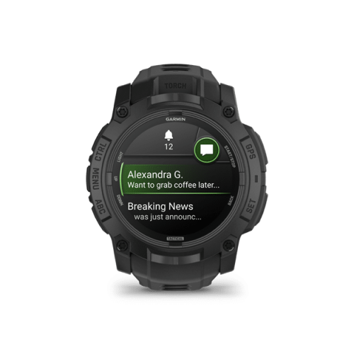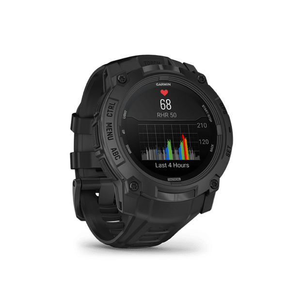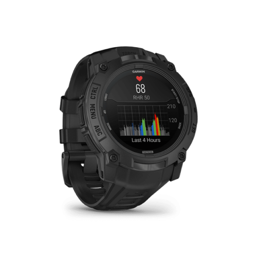 Meet the rugged GPS smartwatch that is built for the mission with an AMOLED display, a metal-reinforced bezel and dedicated tactical features. Purpose-built tactical features include a rucking activity that allows users to input pack weight, stealth mode and kill switch, along with access to an Applied Ballistics® solver (requires one-time purchase via the AB Quantum mobile app). Navigate confidently with a 3-axis compass, barometric altimeter and multi-band GPS with SatIQ™ technology, which delivers superior positioning while also optimizing battery life. It is engineered to MIL-STD-810 standards for thermal and shock resistance and is also 10 ATM water-rated. Light the mission with a built-in LED flashlight with a bright, steady beam in either green or white light. The 24/7 health and wellness features keep you connected to your body with heart rate tracking, advanced sleep monitoring2, Pulse Ox3 and more. The Instinct 3 – Tactical Edition also includes Garmin Pay™ contactless payments4.