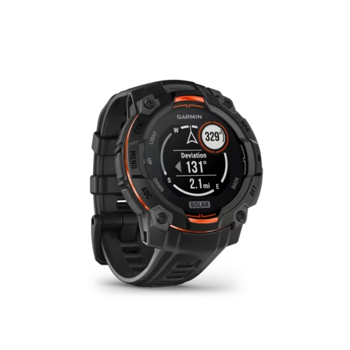 For those who are looking for even greater battery life for their outdoor adventures, Instinct 3 series features options with a monochrome, sunlight-visible, transflective MIP display with a solar charging lens that extends battery life up to 40 days (unlimited with solarÂą) in smartwatch mode on the 50 mm model.