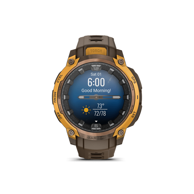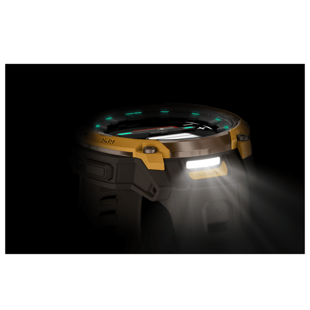 Explore confidently with a rugged design, including a dual-layered metal bezel, 10 ATM water rating, scratch-resistant sapphire lens and MIL-STD build quality for both shock and thermal resistance.