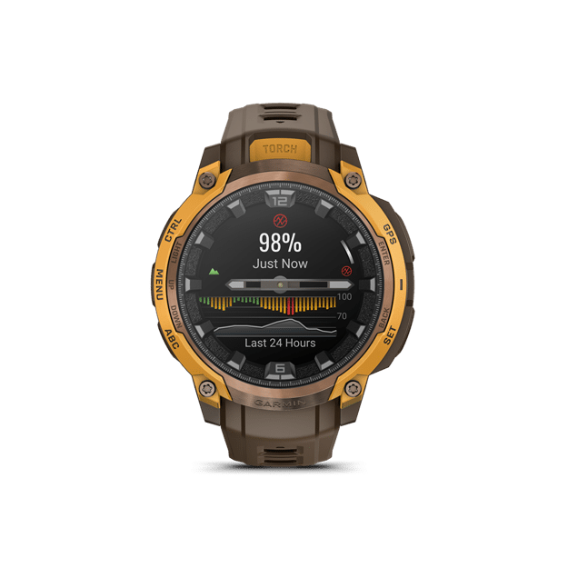 Navigate your next trail with an altimeter, barometer and 3-axis electronic compass.