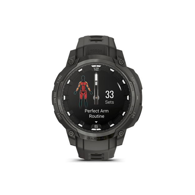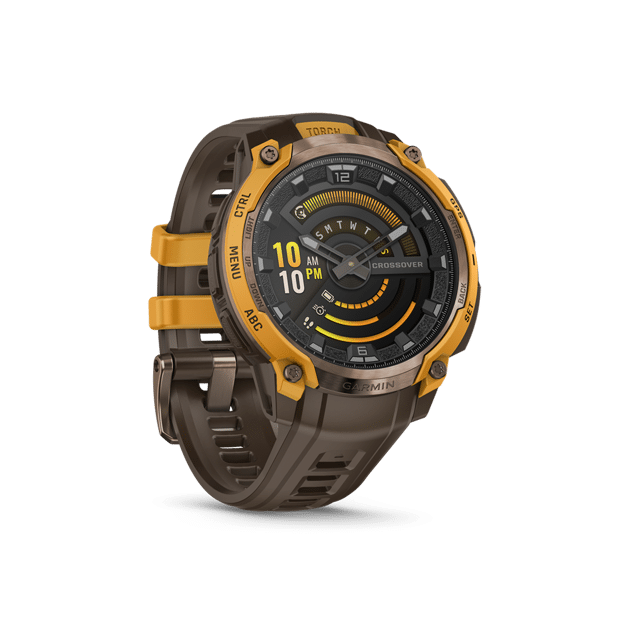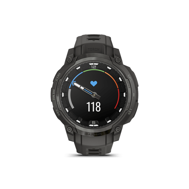 Instinct Crossover AMOLED is a hybrid GPS smartwatch with analog watch hands and a bright AMOLED display. The 1.2″ digital display brings data to life with detail-rich graphics while the scratch-resistant sapphire lens and rugged MIL-STD 810 build quality for shock and thermal resistance make it ready for your toughest adventure. A dimmable LED flashlight provides convenient light, and the analog hands allow for superior readability even in low-light conditions. All-day health and wellness monitoring keeps an eye on your heart rate, sleep, stress and more1. Stay connected with smart notifications, Garmin Pay™ contactless payments and Connect IQ™ Store integration when used with your compatible smartphone. Enjoy up to 14 days of battery life in smartwatch mode and up to 18 days in battery saver mode.