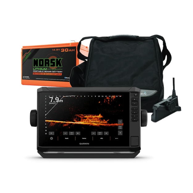 Revolutionary LiveScope sonar technology offers improved resolution, reduced noise, clearer images and better target separation in LiveScope Forward mode and LiveScope Down mode, which allow you to see up to 200’ in any direction. The bundle includes the ECHOMAP UHD2 95sv touchscreen combo, complete LiveScope Plus System with LVS 34 Transducer, swivel pole mount and a lightweight lithium battery for the power to fish all day.