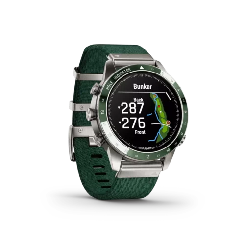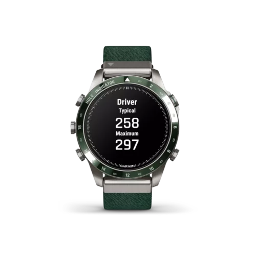 Never settle. Aim for glory. MARQ® Golfer (Gen 2) is a modern tool watch like no other. It’s built from Grade-5 titanium to be harder and stronger, with a stunning new AMOLED touchscreen display that gives you up to 16 days of battery life in smartwatch mode and up to 42 hours in GPS mode. With more than 42,000 preloaded golf courses and the most advanced game-tracking data, including the virtual caddie feature to tell you what to hit and where to aim, you’ll be able to take your performance to entirely new heights.