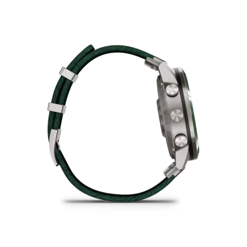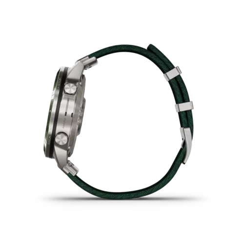 - Premium-crafted tool watch features a precision design with a 46-mm case made of ultrahard, Grade-5 titanium with pine green ceramic inlay hole indicator; an intricate jacquard-weave nylon strap has a premium QuickFit® mechanism