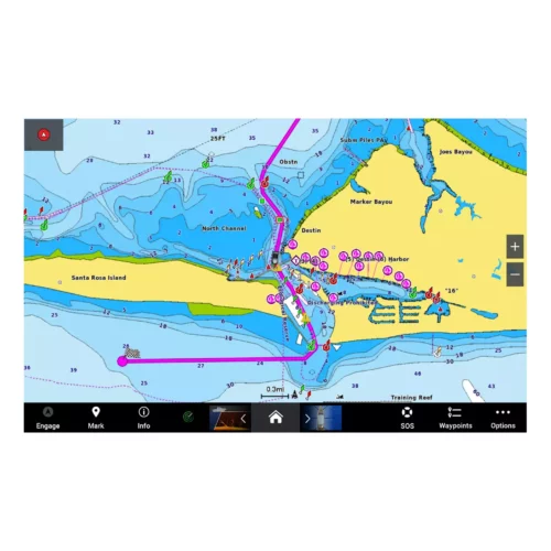 Built-in Auto Guidance+ technology¹ uses your desired depth and overhead clearance, along with chart data and frequently traveled routes, to calculate a suggested path to follow from dock to dock.