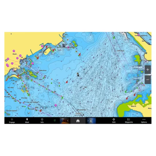 Plot your paradise — with the best, most up-to-date Garmin Navionics+ marine cartography on your compatible Garmin chartplotter. For offshore or inland waters, this all-in-one solution offers detail-rich integrated mapping of coastal features, lakes, rivers and more. It features shaded depth contours, advanced Auto Guidance+ technology¹ and access to daily updates via the ActiveCaptain® app for the freshest chart data every time out. Combining the best features of Garmin and Navionics® automatic routing solutions, Auto Guidance+ gives the boater a suggested dock-to-dock path to follow through channels, inlets, marina entrances and more. Multiple shading options aid in shallow water navigation and make it easy to select depth ranges for the best fishing spots. Downloadable NOAA raster imagery is also available for those who want the familiar look of paper charts.