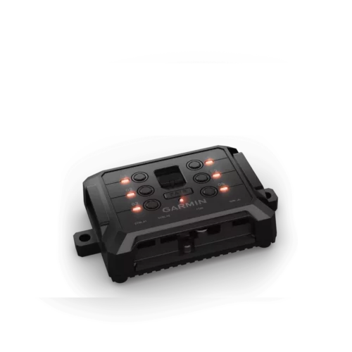 The Garmin PowerSwitch digital switch box uses BLUETOOTH® wireless connectivity to program and operate your accessories from compatible Garmin navigators or smartphones.