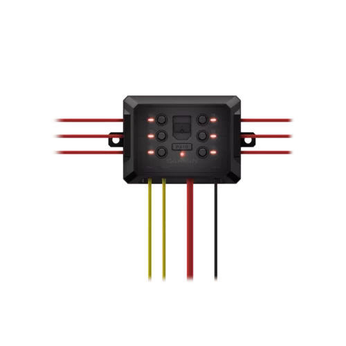 Use the Garmin PowerSwitch digital switch box to control your vehicle’s 12-volt accessories (up to six outputs of 30 amps each), including light bars, horns, air compressors, differential locks and more. The compact weather-resistant (IPX7)Âą digital power switch box is easy to install with no cutting into your dash to mount switches and no interference with vehicle electronics. Wirelessly connect with your compatible² Garmin navigator or smartphoneÂł for simple control of accessory outputs right from your touchscreen device. Create custom virtual switch panels to activate groups of channels and control dimming and flashing.