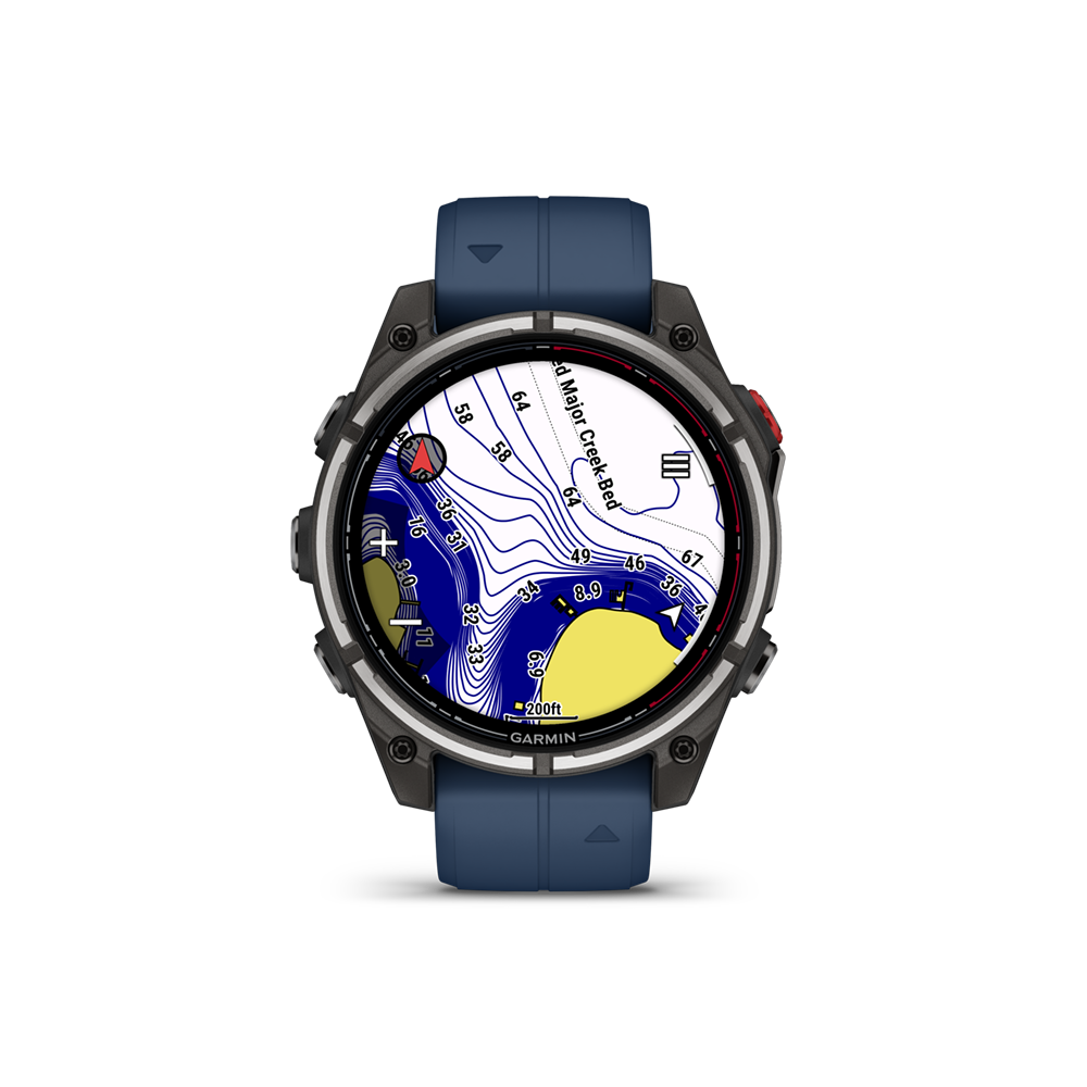 This smartwatch comes with TopoActive maps with relief shading and supports optional BlueChart® g3 coastal charts and LakeVü™ g3 inland maps.