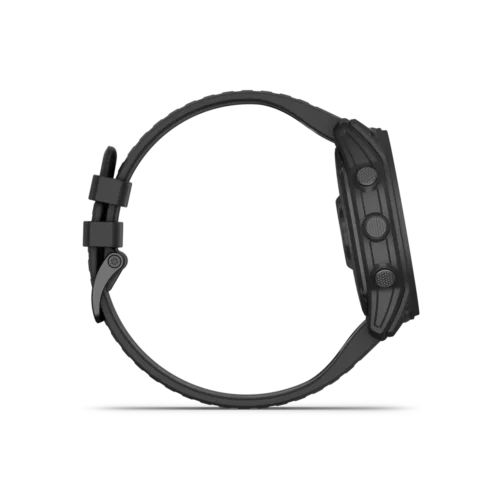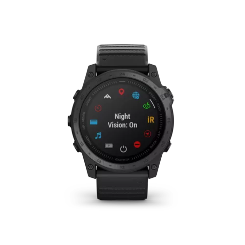 tactix 7 is the tactical multisport GPS smartwatch with traditional button controls and a touchscreen display. Featuring a rugged yet sophisticated design, tactix 7 has an always-on 1.4” display, custom front bezel design, black DLC-coated titanium bezel and black PVD coated titanium rear cover. Mission-ready tactical features include a sapphire lens with dimmable white or green LED flashlight, night vision compatible display, preloaded tactical and aviation features, dual-position GPS formatting, Jumpmaster mode, projected waypoints, stealth mode and kill switch. Navigate the harshest environments with elite navigation featuring preloaded TopoActive and ski maps plus multi-band and multi-GNSS support. Pilots will appreciate new aviation features such as Direct-to and Nearest airports, METARs/TAFs and NEXRAD weather radar. The tactix 7 smartwatch also includes advanced training and performance tracking such as real-time stamina, comprehensive health and wellness monitoring, and everyday functionality with smart notifications¹, Garmin Pay™ contactless payments² and more.