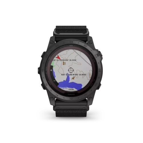 tactix 7 is the tactical multisport GPS smartwatch with traditional button controls and a touchscreen display. Featuring a rugged yet sophisticated design, tactix 7 has an always-on 1.4” display, custom front bezel design, black DLC-coated titanium bezel and black PVD coated titanium rear cover. Mission-ready tactical features include a sapphire lens with dimmable white or green LED flashlight, night vision compatible display, preloaded tactical and aviation features, dual-position GPS formatting, Jumpmaster mode, projected waypoints, stealth mode and kill switch. Navigate the harshest environments with elite navigation featuring preloaded TopoActive and ski maps plus multi-band and multi-GNSS support. Pilots will appreciate new aviation features such as Direct-to and Nearest airports, METARs/TAFs and NEXRAD weather radar. The tactix 7 smartwatch also includes advanced training and performance tracking such as real-time stamina, comprehensive health and wellness monitoring, and everyday functionality with smart notifications¹, Garmin Pay™ contactless payments² and more.
