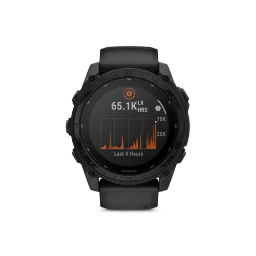 For those who are looking for even greater battery life for their outdoor adventures, tactix 8 features options with an always-on MIP display with a solar charging lens that extends battery life up to 48 days in smartwatch mode1.