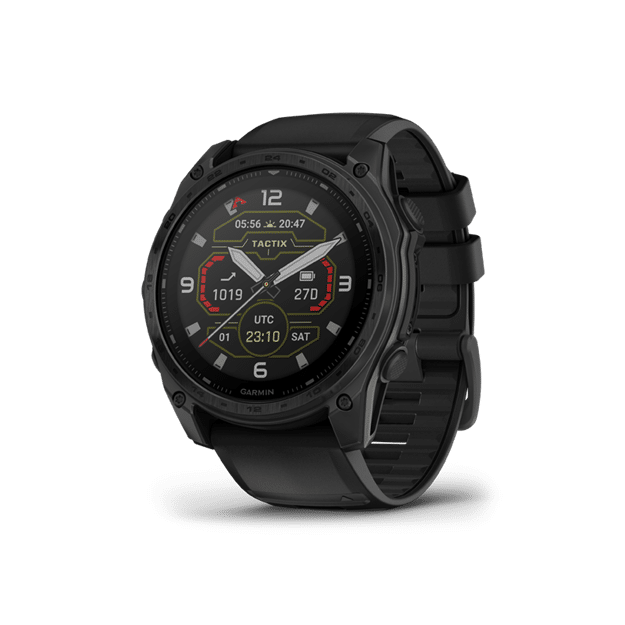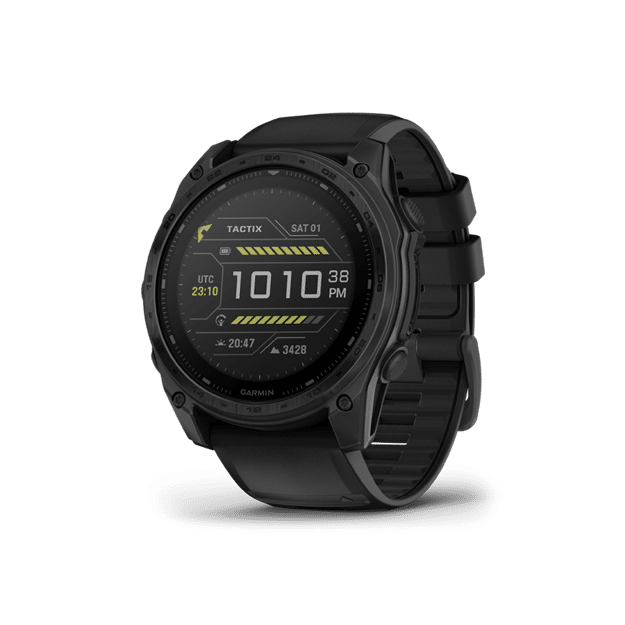 tactix 8 is built for the mission, wherever it takes you. These are the ultimate tactical GPS smartwatches with solar chargin display, dedicated tactical features and a 40-meter dive rating. With the solar charging lens, get better battery life for dedicated tactical features include jumpmaster activity, waypoint projection, dual-position GPS format, stealth mode, kill switch, compatibility with night vision goggles, rucking activity and a preloaded Applied Ballistics® solver. Navigate the outdoors with superior positioning accuracy, thanks to multi-band GPS with SatIQ™ technology plus built-in sensors for 3-axis compass, gyroscope and barometric altimeter. To help guide your way in low-light conditions, a built-in multicolor LED flashlight provides quick access to a bright, steady beam in either green or white light.
