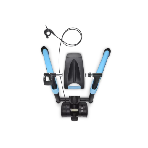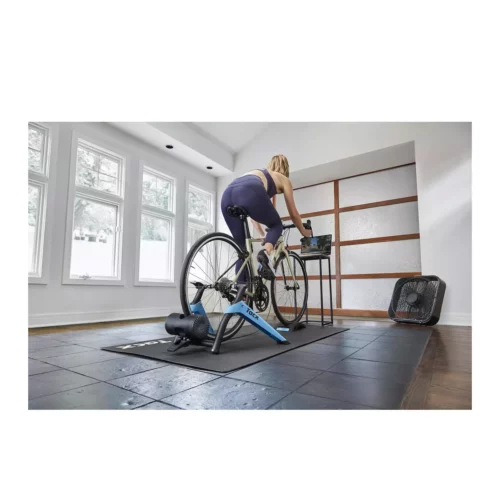 This indoor trainer has a small footprint, 675 x 650 mm (26.6” x 25.6”), but provides a sturdy ride