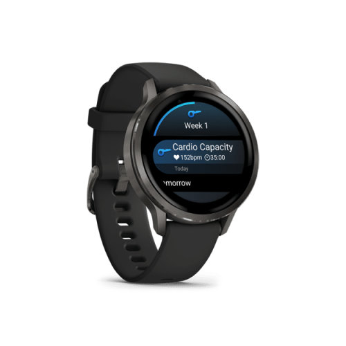 Make improvements toward a healthier lifestyle with extensive health monitoring features, such as Body Battery™ energy monitoring, stress, Pulse Ox¹ and women’s health tracking — including past ovulation estimates² — and more³.