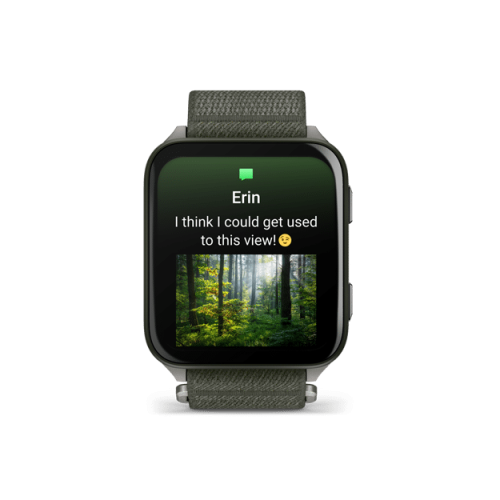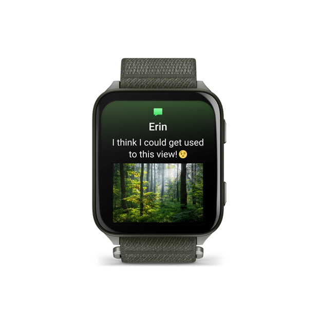 Use the keyboard to send quick text responses on your paired watch (Android only or through the Garmin Messenger™ app6 ) so you can keep your phone in your pocket.