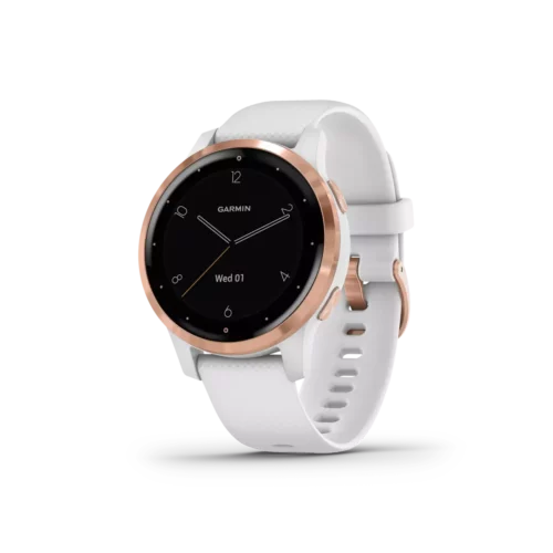 The watch constantly samples your heart rate and will alert you if it stays high while you’re at rest. It also helps gauge how hard you work during activities.