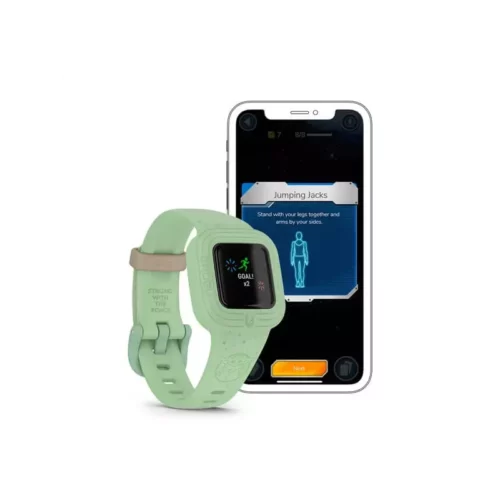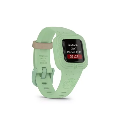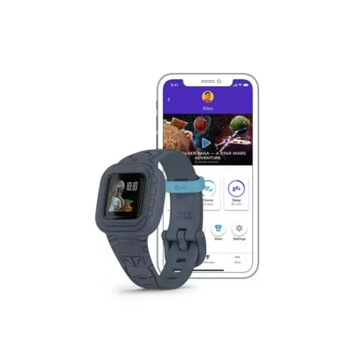 Your “younglings” can seek their destiny with the vĂvofit jr. 3 fitness tracker for kidsÂą in The Mandalorian™ and Grogu™ designs. Featuring a colorful display with Mando and Grogu watch faces, these kid-tough, swim-friendly² trackers get up to 1 year of battery life. With it, kids can unlock Star Wars™ adventures by completing 60 minutes of daily activityÂł. Parents can use the Garmin Jr.™ smartphone app to monitor steps, sleep and active minutes, manage and assign chores, set timers and even give rewards to positively reinforce good behavior. Motivate kids to keep moving with timed activities or Toe-to-Toe™ step challenges4 with friends. And for a little peace of mind, your child’s emergency contact phone number can be stored right on vĂvofit jr. 3.