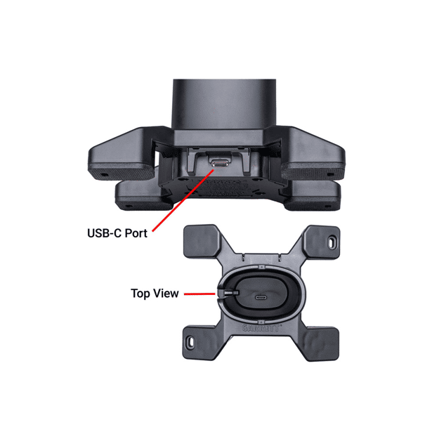 Garrett Guides, additional charging bases, USB-C cable, and high current power adapter not included.