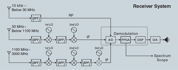 Covers 10kHz to 3GHz, Wideband Receiver with Multiple Digital Mode Decode.