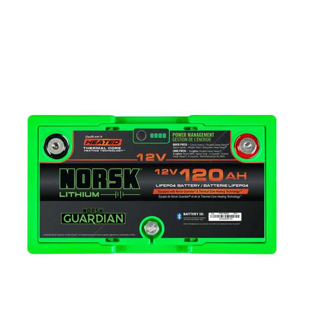 Our batteries stem from the dedication of outdoor enthusiasts relentlessly pursuing advanced rechargeable lithium technology to power their passions. Recognizing the urgency of a robust power source, the Norsk 12V 120AH HEATED LiFePO4 Lithium Deep Cycle Marine Battery is designed to endure over 4,000 charge cycles, backed by an exceptional warranty. Enjoy a standard 10-year warranty, plus an additional 2 years when you sign up for the Norsk Guardian® App, ensuring enduring performance. Whether you’re braving the cold on a fishing trip or embarking on an off-grid adventure, you can trust Norsk Lithium® to deliver reliable power when you need it most.