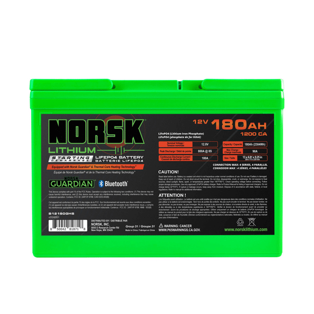 Built with premium materials and advanced lithium technology, this battery offers exceptional durability and a significantly longer lifespan than traditional lead-acid batteries. Its robust construction is designed to withstand the harsh conditions of marine environments. Enhance your marine power system with the 12V 180AH HEATED Lithium Marine Cranking Battery from Norsk Lithium®. Designed for ultimate reliability, durability, and convenience, it’s the perfect choice for those seeking a powerful and dependable energy solution on the water. Stay powered and in control with Norsk Lithium®, and make sure your marine adventures are always fully charged.
