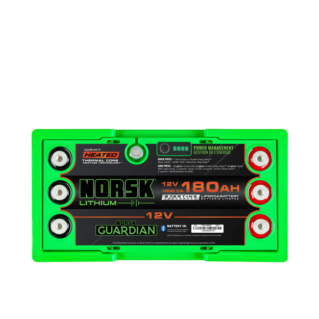 Our batteries stem from the dedication of outdoor enthusiasts relentlessly pursuing advanced rechargeable lithium technology to power their passions. Recognizing the urgency of a robust power source, the Norsk 180AH HEATED Lithium Marine Cranking Battery is designed to endure over 4,000 charge cycles, backed by an exceptional warranty. Enjoy a standard 10-year warranty, plus an additional 2 years when you sign up for the Norsk Guardian® App, ensuring enduring performance. Whether you’re braving the cold on a fishing trip or embarking on an off-grid adventure, you can trust Norsk Lithium® to deliver reliable power when you need it most.