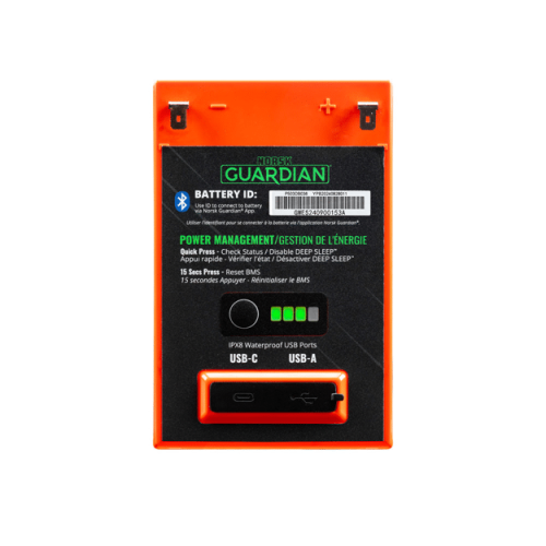 Integrated Bluetooth connectivity lets you pair the battery with the Norsk Guardian® App, providing remote access to vital stats like voltage, current draw, and temperature—all from your smartphone. Whether you’re monitoring usage trends or checking charge levels between casts, the app gives you complete control and peace of mind.